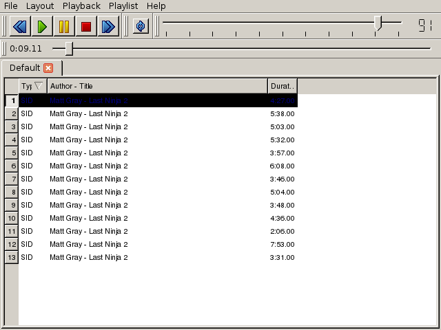 Playing: ./Last_Ninja_2.sid?#1 Type: SID Container: SID Program: Title: Last Ninja 2 Author: Matt Gray Time: 4:27.00 Channels: 1 Position: 0 Line: 0 Channels: 1 Pattern: 0 Frame: 0 Tempo: 1 [0:00.19] [>--------------------------------------------------------------------------------------------------------------------------------------------------------------------------------------------------------------------------------]